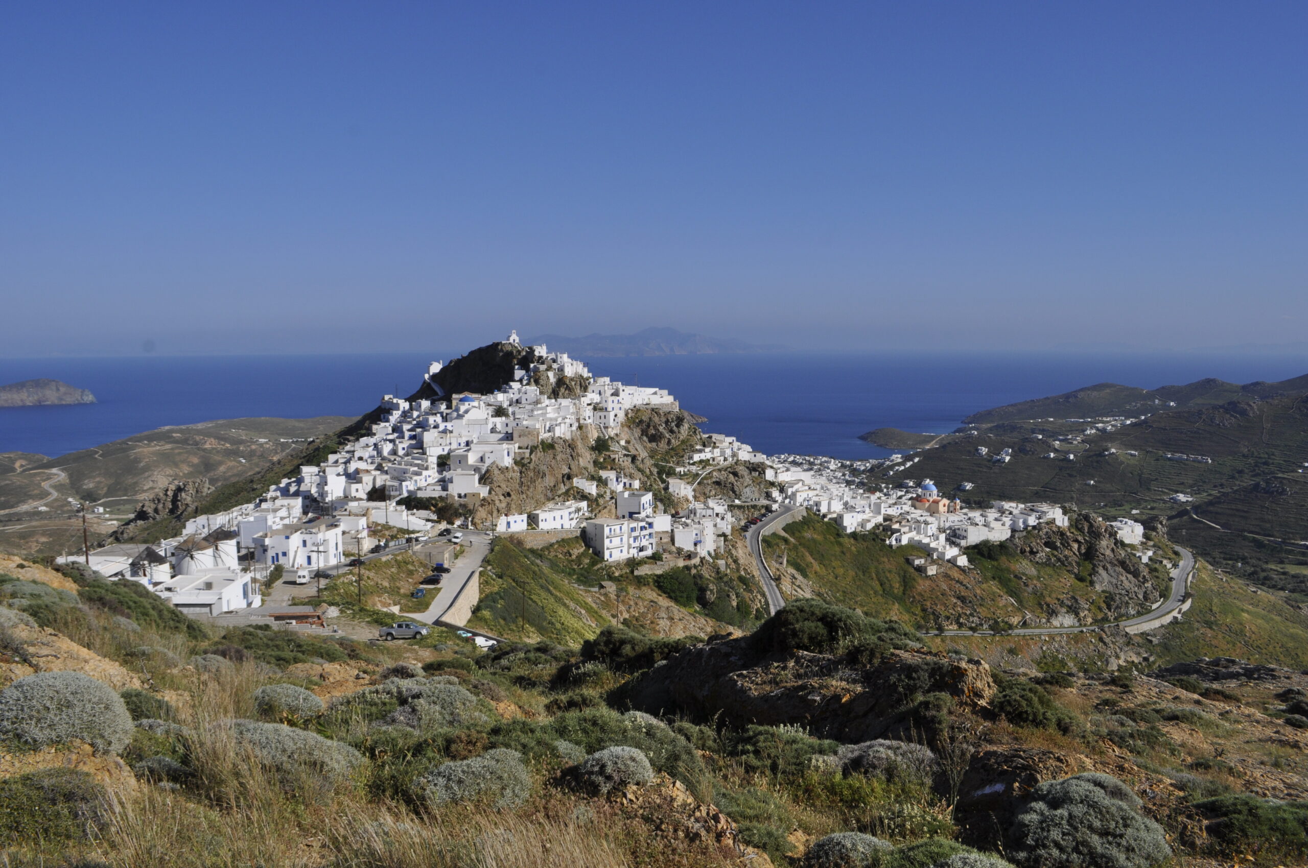- Εμπειρία: Ακολουθήστε το εξαιρετικά διατηρημένο λιθόστρωτο καλντερίμι που ελίσσεται προς την εντυπωσιακή Χώρα. Εξερευνήστε τα λευκά σοκάκια και το Ενετικό Κάστρο για μια πανοραμική θέα του κόλπου πριν επιστρέψετε στο λιμάνι